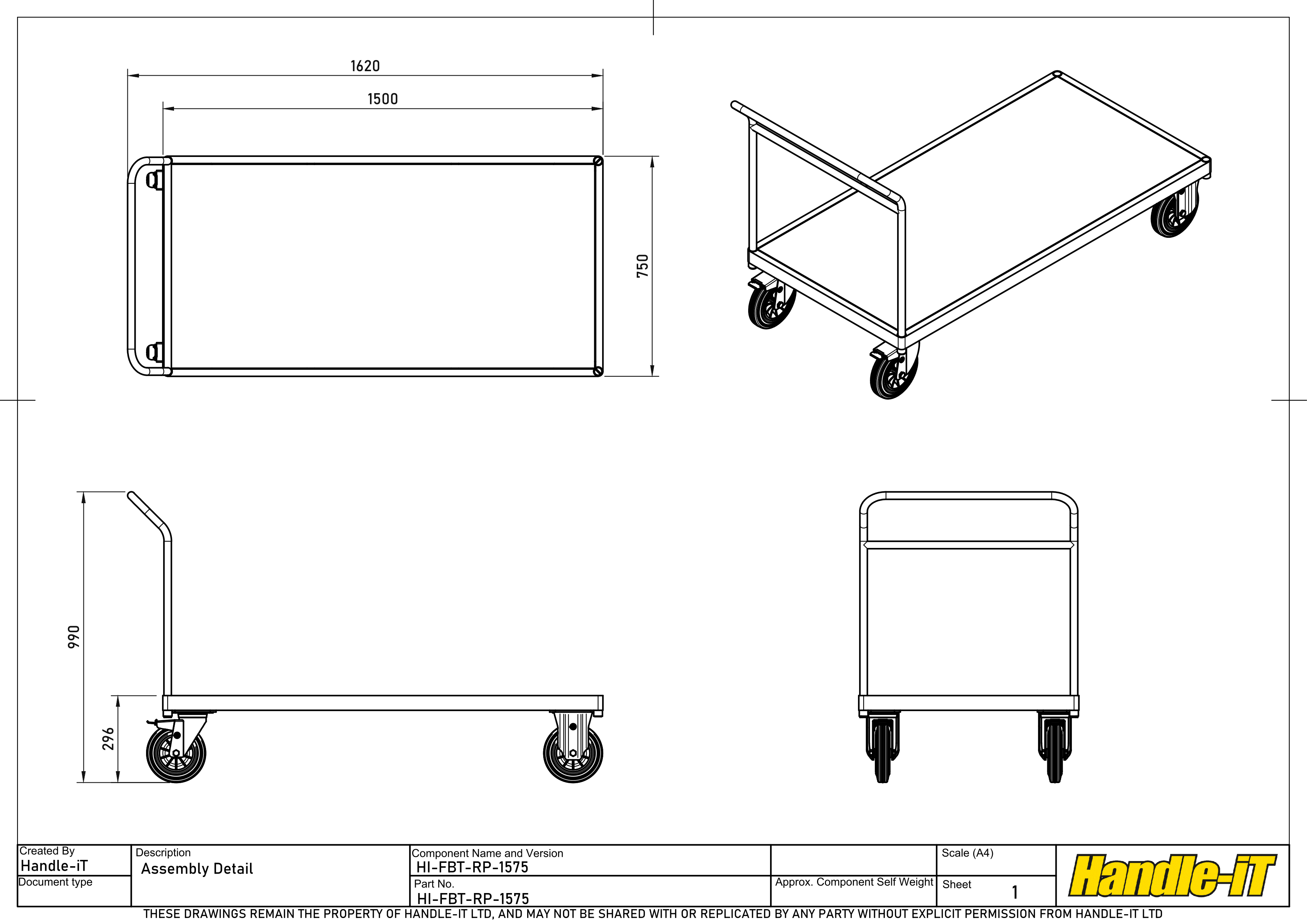 The range can be made to whatever size you require. With handles set at the perfect working height and angled away from the base to eliminate trip hazards with the statutory 120mm clearance. The laser cut base manufactured from a single piece of 50mm x 25mm box sections formed around the corner post location spigots, creates a beautifully rounded corner rather than a sharp and aggressive mitred corner that will make holes in walls and ankles in the unfortunate event of a collision. Mounted on high quality 200mm diameter wheels as standard, with 2 fixed castors for direction and 2 swivel with brake for manoeuvrability and safety, which will cope with any firm ground. Our Premium and Premium Plus Ranges of Platform Trucks all conform to BS-EN1757-1, giving you the confidence that Handle-iT is your safer choice.