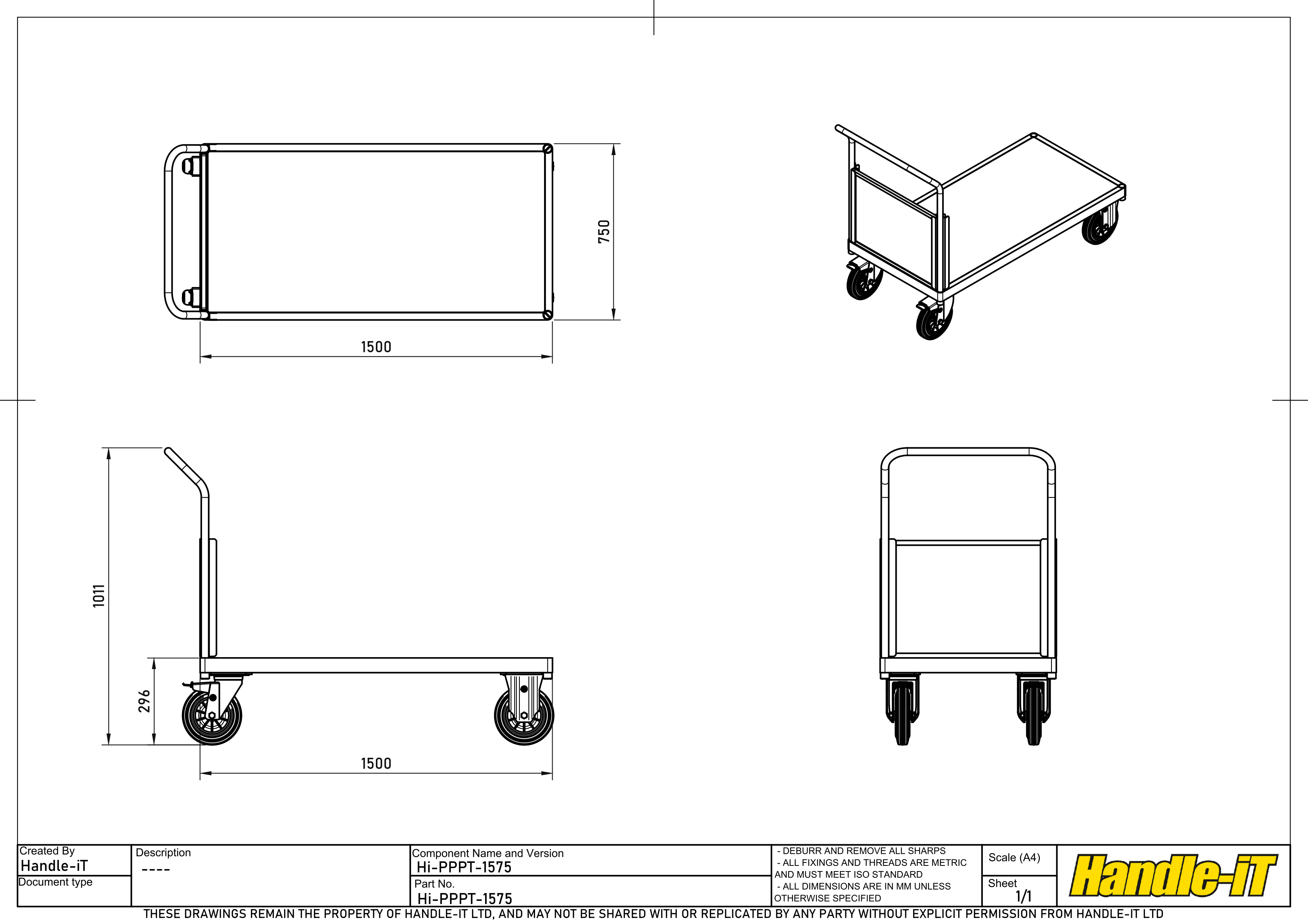Platform Truck With Single Plastic End is part of our Premium Platform Truck Range. As always, we like to bring new products into our industry. We have designed this range of trolleys with a new set of features for different environments. By using tough, high impact polypropylene to clad trucks, we provide a durable product that is suitable for the aviation industry, as well as being far easier to keep looking clean and tidy. With an ergonomically positioned handle which offers comfort to the operator and reduces fatigue over long shift. The robust 50mm x 25mm box section frame builds great strength into the product, ensuring that the five year warranty is a minimum not a target. Fitted with high quality castor brackets, which mount a great all-purpose utility wheel that can cope with most hard standings, and are configured as standard with 2 fixed castors and 2 swivel with brake for additional safety