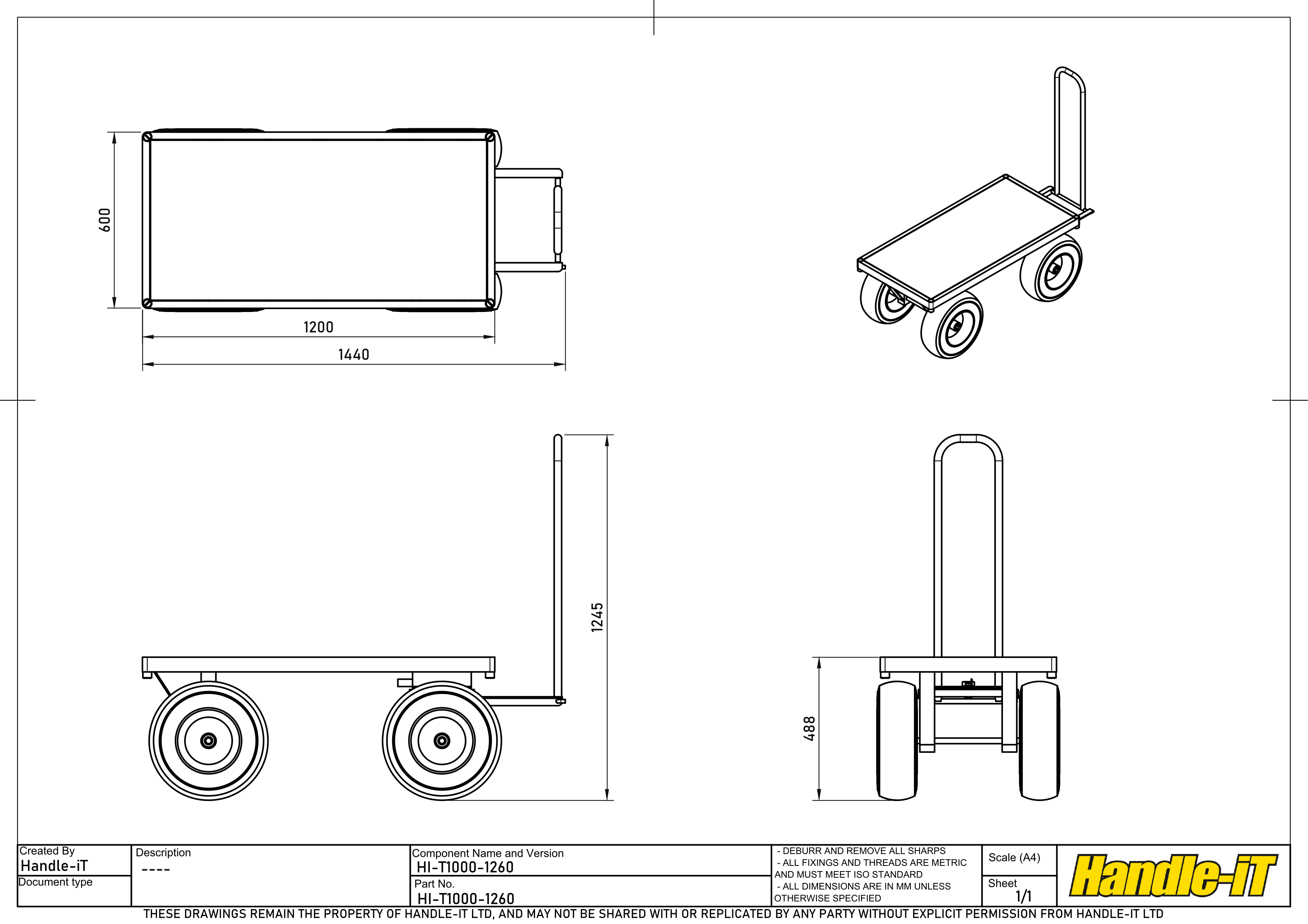 The trolley uses our classic HIT1000 Turntable Trolley design but features a range of upgrades. The first of these upgrades is improving the base, replacing the standard weatherproof 18mm ply with a premium quality impact and weather resistant Non-Slip phenolic board. There are also vast improvements to the turntable head and the handle providing even greater stability and a reliable turntable-style steering mechanism.
