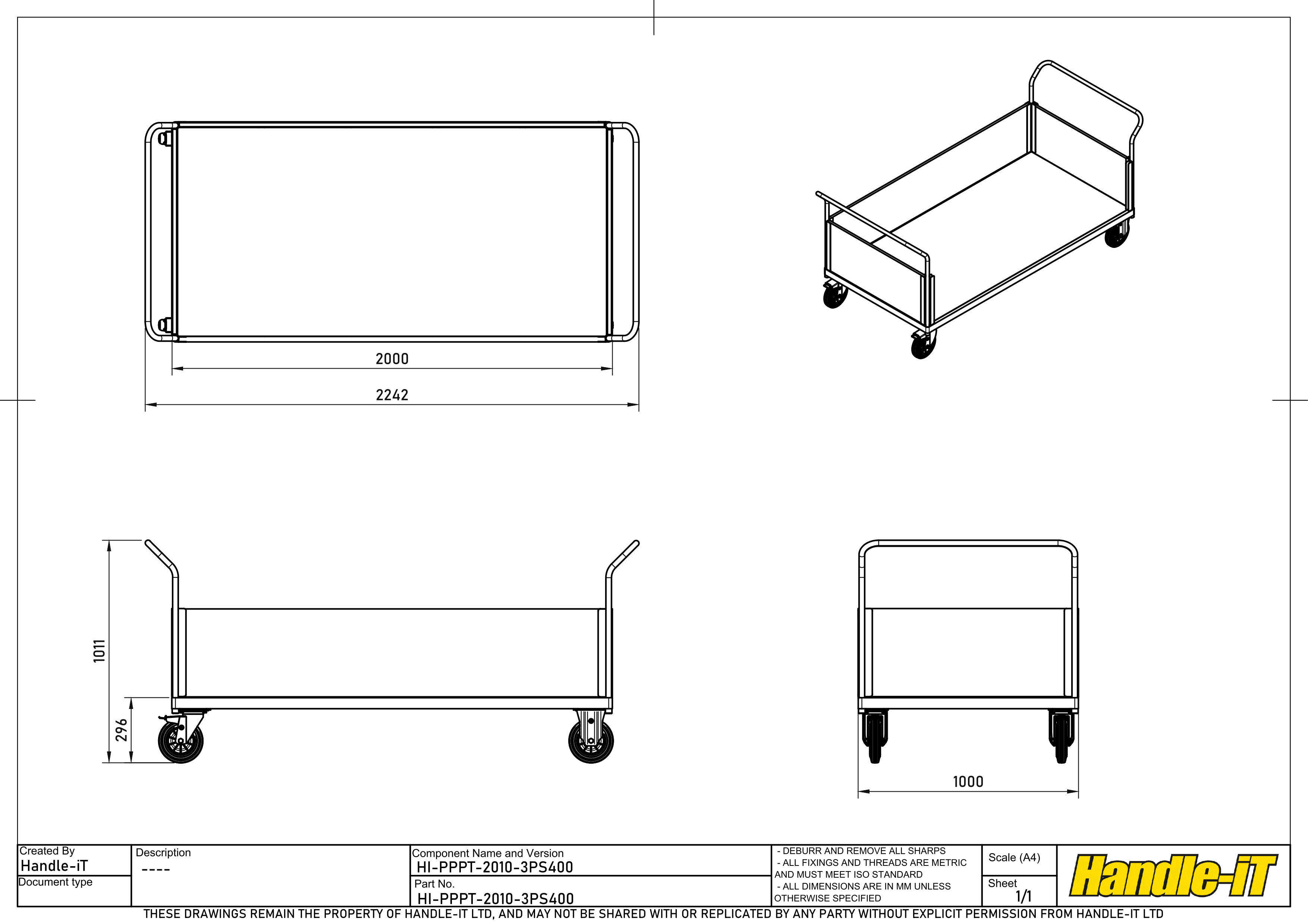| HI-PPPT-2010-3PS400-4SWB-GNM | 2000mm x 1000mm | 2x Swivel, 2x Braked Swivel | Grey Non-marking Tyre with Black Centre | In Stock | |