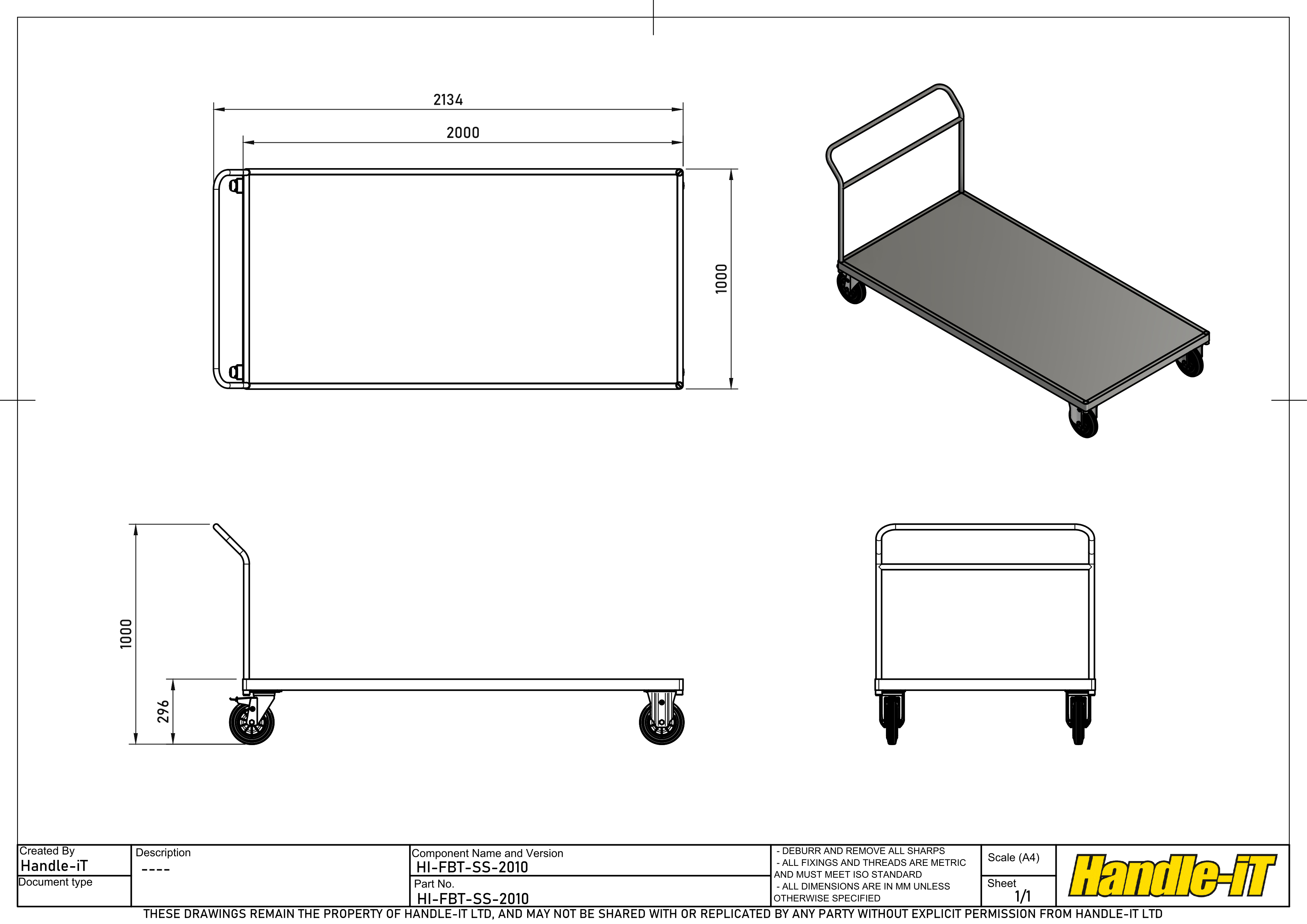 Bespoke Modifications As a manufacturer, Handle-iT can modify any trolley to suit your needs. For this particular trolley, we can also apply plastic, wood or sheet steel for the sides, modify sizes, use alternate materials for specific uses such as galvanised or stainless steel, as well as a range of other bespoke modifications. For more information, contact the sales team on 01803 875 222, or email sales@handle-it.com.